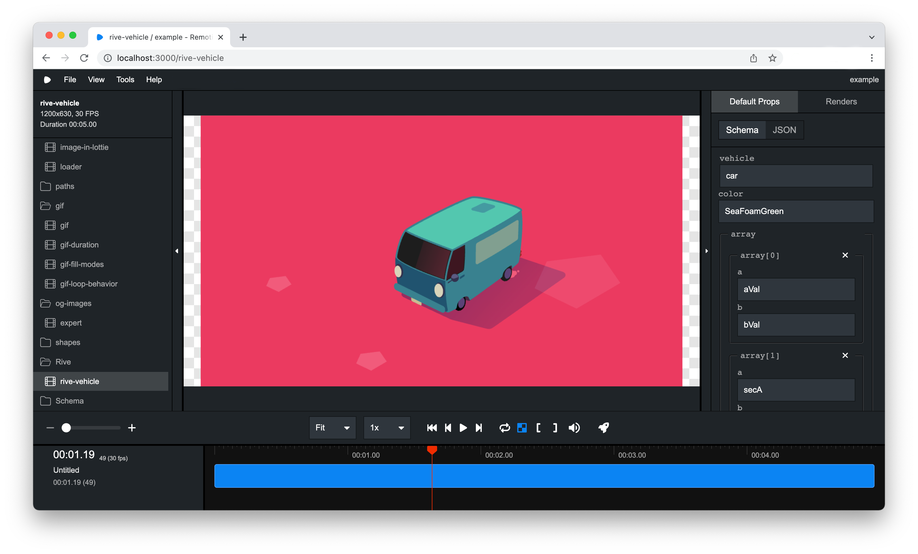 (or a higher port if it isn't available) and the Remotion Studio should open in the browser.